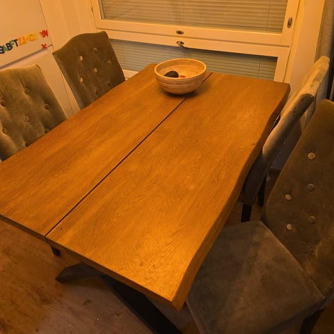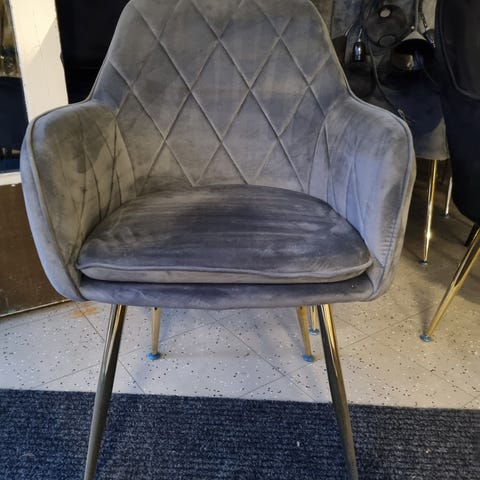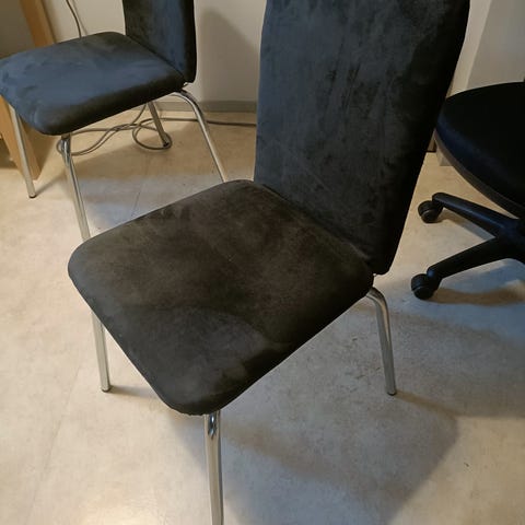 Musta samettinen ruokailutuoli. Ollut pari vuotta käytössä. Hyvä kunto.