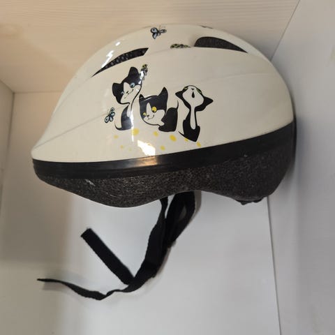 Prismasta ostettu kissakuvionen kypärä pienelke. Ollut vähällä käytöllä.