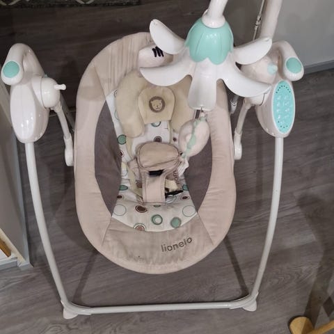 * 5-portainen keinunopeuden säätö ja ajastin, joka voidaan asettaa 8, 15 tai 30 minuuttiin (jos ajastin on pois päältä, keinu toimii jatkuvasti).