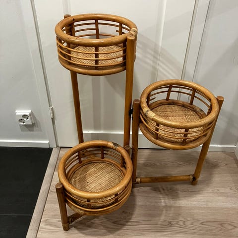 Rottingistä valmistettu kukkateline. Vain sisäkäyttöön.