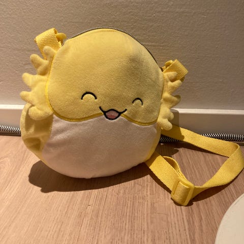 Squishmallows Cameron kissa pikkureppu. Ollut lapsella yhdellä viikonloppureissulla käytössä. Kunto on mielestäni ihan uudenveroinen, ainoastaan pohjasta erotin valoa vasten hieman tummentumaa. Lisäkuva, mutta oli hankala saada kuvaan.