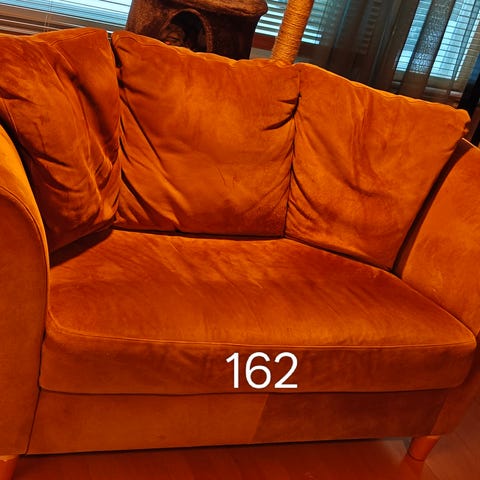 Sohvatyynyjen alta on näyttävästi kangas revennyt jonkin verra