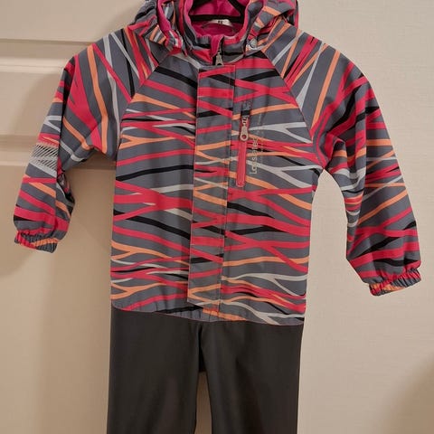 Yhdellä lapsella käytössä ollut hyväkuntoinen välikausihaalari, jossa kevyt vanuvuori ja kurahaalari alaosa. Lenksut ehjät.