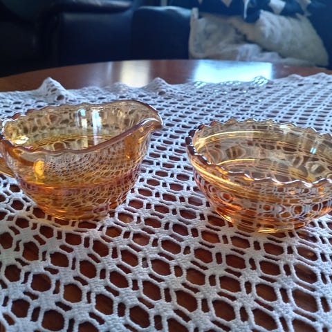 Vanha hyvässä kunnossa oleva Lyyra sokerikko, Riihimäen lasi tuotantoa