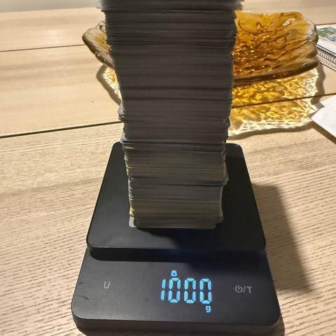 1kg (999g tarkkamäärä) noin 550kpl kortteja eri sarjoista.