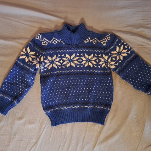 Myydään kuvien neulottu pusero7 Northern Classics. Valmistajan mukaan koko 120cm. Mitat kaulankohdalta helmaan 44cm, hiha 36 cm ja kainaloiden kohdalta puseron ympärysmitta 82cm