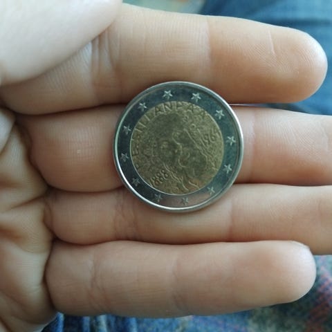 suomalainen Helene Schjerfbeckin 150-vuotisjuhlaraha, joka on 2 euron erikoisraha vuodelta 2012.