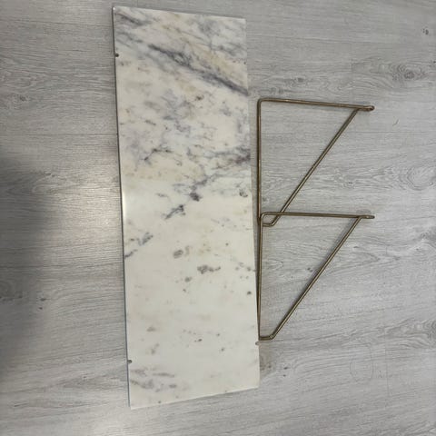 Myydään käyttämätön marmorinen seinähylly, jossa messingin väriset metalliosat. Helppo kiinnitys.