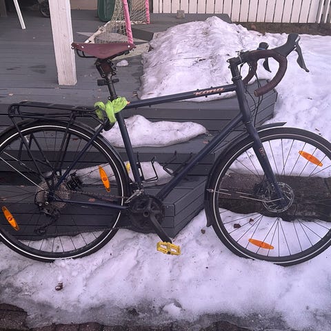 Myydään päälle vuoden seissyt Kona Rove pyörä. Runko hyvässä kunnossa. 1x8 vaihteet, m-runko ja levyjarrut.