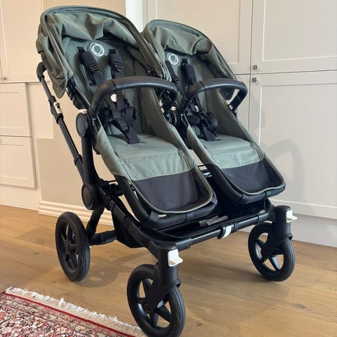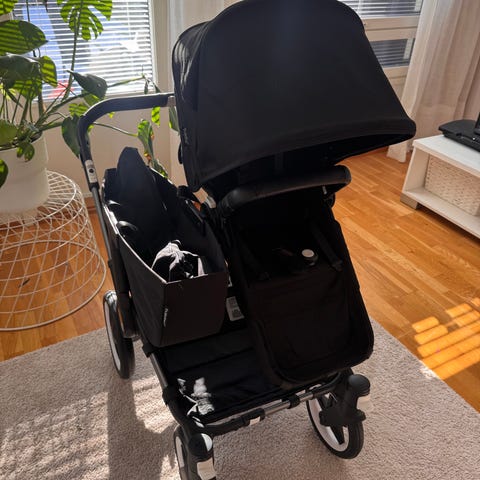 Käytettynä ostetut todella hyväkuntoiset bogaboo donkey duo 5 sisarus/yhdistelmärattaat jotka saa muutettua helposti yksilörattaiksi.