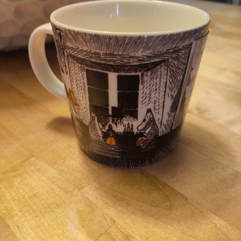 Uusi muumimuki Avantouinti, tarra paikoillaan. Nouto ja käteismaksu.