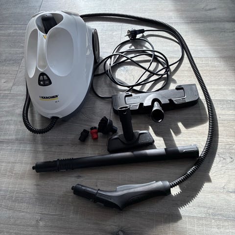 Kärcher SC 2 -höyrypuhdistin. Keltainen höyrypuhdistin kodin kovien pintojen, kuten lattioiden, laattojen ja muiden pestävien pintojen puhdistukseen. Mukana höyryletku ja lattiasuulake sekä jatkoputkia. Laitteessa on pyörät liikkumisen helpottamiseksi ja vesisäiliö höyryntuottoa varten. Soveltuu kotitalouskäyttöön höyrypuhdistukseen ilman kemikaaleja.
