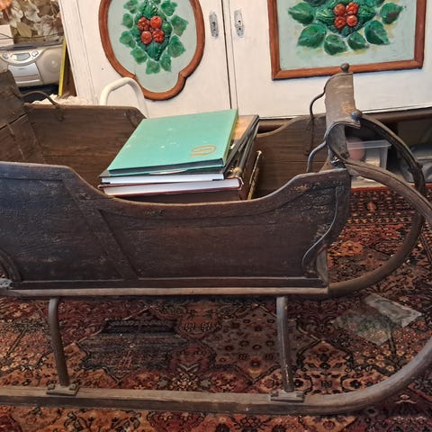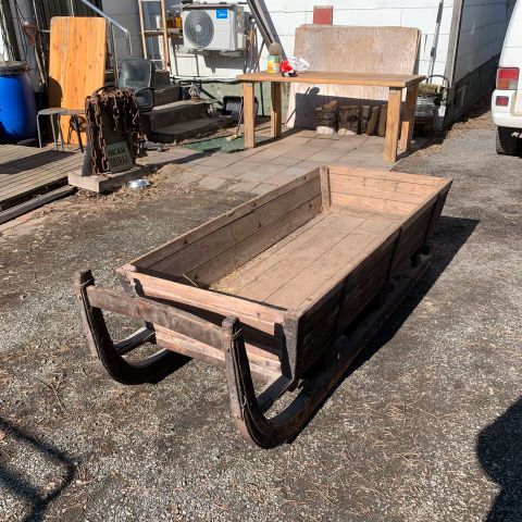 Pituus n. 135cm, leveys 38cm ja kahvojen korkeus 80cm maasta. Pelti pohja.