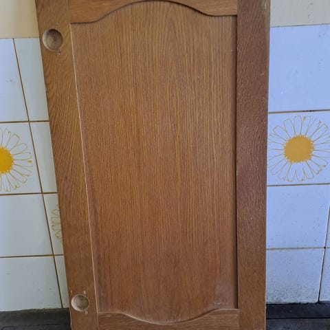 Männyn oksasta tehty oven kahva.Petsattu tumman ruskeaksi.Kahvan korkeus n.45cm ja leveys n. 30cm.Unikki tuote.Nouto Hämeenlinnasta.
