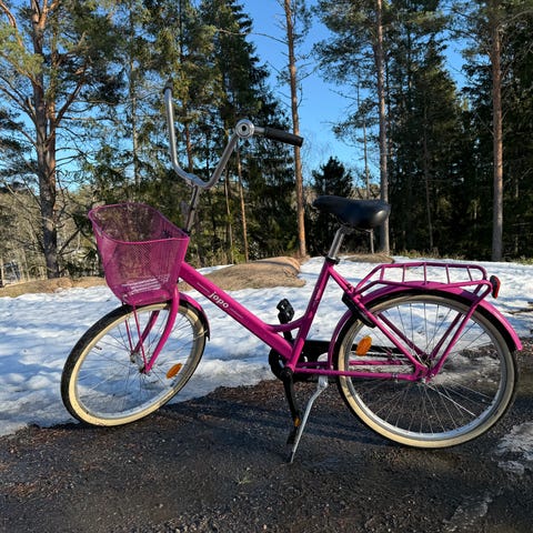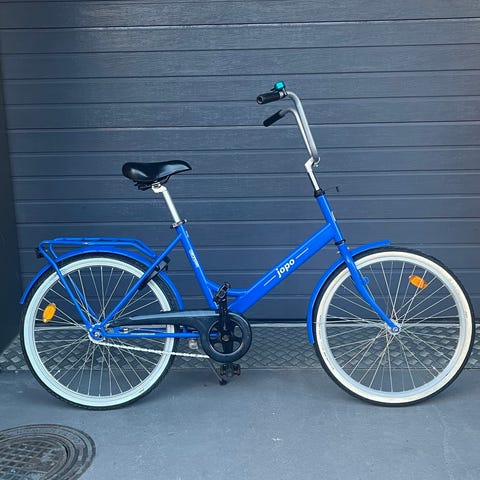 Hyväkuntoinen harmaa Jopo. Kahdet avaimet. Ostokuitit tallessa. Runkokoko 136cm. Ylöspäin sopivalle henkilölle.