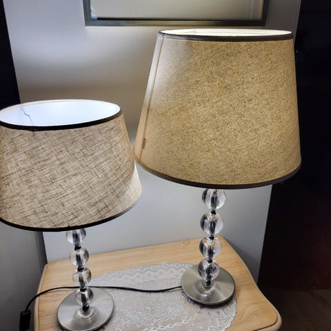 Kaksi kappaletta valkoisia Pentikin Deco lampunvarjostimia. Korkeus 20cm, pohjan leveys 29cm. Toisessa sisällä pieni halkeama, joka ei näy ulospäin eikä vaikuta käyttöön (ks kuva). Sopii esimerkiksi yöpöydän valaisimiin. Varjostin kiinnitetään kiristysrenkaalla valaisimeen. Sopii E27-kantaisiin lampunjalkoihin.