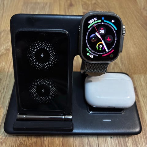 Like-new Native Union Drop XL charging station elegantly powers your iPhone, Apple Watch, and AirPods all at once.