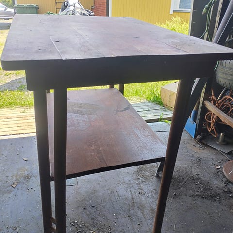 Myyn laadukkaan vanhan pienen pöydän. Valmistaja Ryden & Möbler AB Ruotsissa. Pöydän korkeus 65 cm ja halkaisija 62 cm. Pohjassa huonekaluvalmistajan logo. Pieniä kulumia pöydän reunassa. Hinta 20 euroa. Säynätsalossa.