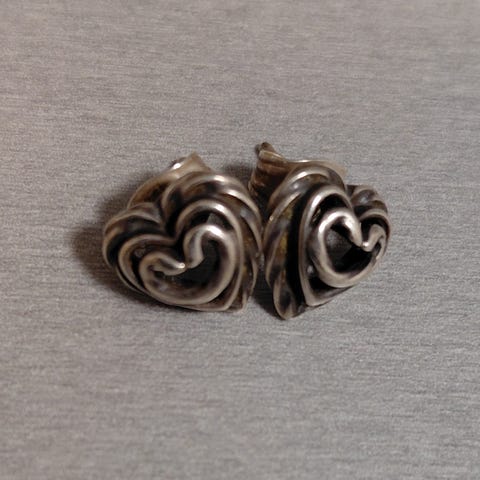 Hyvä kuntoiset Kalevala korvakorut . Riipusmalliset korvakorut, joissa sydämenmuotoinen kuvio. Valmistettu hopeasta.