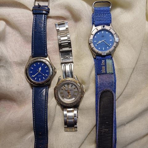 Mustalla nahkarannekkeella.