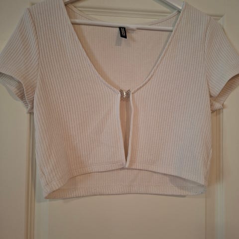 Kaksi Lindexin t-paitaa, koko M. Molemmat melko cropattuja malliltaan. Valkoinen moitteeton, tahraton. Vihreässä pieni reikä paikattu lapaluun kohdalta, muuten ok.