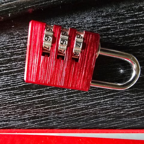 Vaijerilla oleva pieni numerosarjalukko vaikka matkalaukun mukitsemiseen