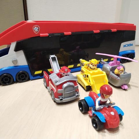Ryhmä haun hauvaunu. Leikitty, mutta hyvä vielä uudelle leikkijälle. Äänet toimii. Mukaan mönkijä ja Riku