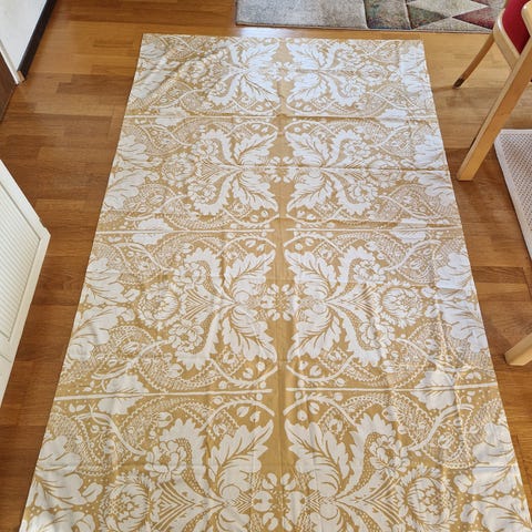 Verhot olleet vähällä käytöllä. Olleet vuosia kaapin perukoilla. Verhoja ei ole kertaakaan pesty mutta ovat puhtaat ja hyväkuntoiset. Ainostaan pieni ns. kauneusvirhe toisessa verhossa oleva läikkä, jossa kankaan vaalempi väri on värjääntynyt tummemmesta väristä pikkaisen. Näkyy viimeisissä kuvissa ( kuvat 4-6) tarkemmin. Läikkä ei käytössä käytännössä näy ja luulisin, että lähtee pois kun kankaan pesee. En kuitenkaan mene takuuseen lähteekö pesemällä.