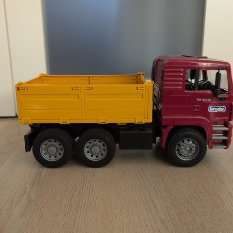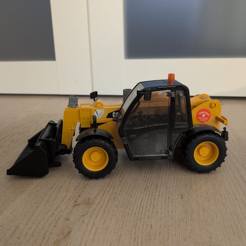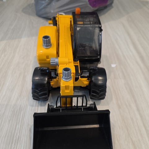 Bruder kaivurikuormaaja leluajoneuvo. Keltainen muovinen työkone, jossa on etukuormaaja ja takana kaivuri. Etukauhaa ja takakaivuria voi liikuttaa, ja tukijalat ovat käännettävissä alas. Soveltuu leikkimiseen sisätiloissa tai ulkona hiekkaleikeissä. Muotoiltu jäljittelemään oikeaa kaivurikuormaajaa yksityiskohtineen. Tukijalat pysyy huonosti ylhäällä, muuten toimii.