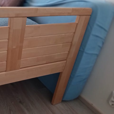 Ehjä sängynrunko, purettu. Säilytetty viimeviikot autotallissa, ulkona, mutta sään suojassa. Patjat myös tallissa ja olleet käytössä, kunnes tuli uusi sänky. Ei siis moitteita, mutta vanhoja ovat ja ulkona säilytetty.