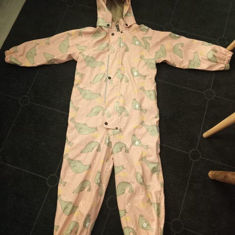 Pehmeä fleecevuorinen kurahaalari. Haarojen kohdalla kulumaa, myös toisessa polvessa. Haarojen kohdan ruhje vuotaa; voisi ajatella paikkaavansa esim paikkaustarralla/teipillä. Polvi ei vuoda, ruhje vain vahvikkeessa. ”ripustus lenksu” poikki. Eläimetön ja savuton talous. Katso kuva tekstit.