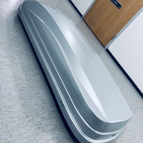 Viisihenkisen perheen laskettelu- ja hiihtokamat mahtuu hyvin. Kansi ei pysy ylhäällä ilman erillistä tukea, mulla ollut laudan pätkä. Hyvä boksi eteenpäin kun ei saanut uuden auton katolle.
