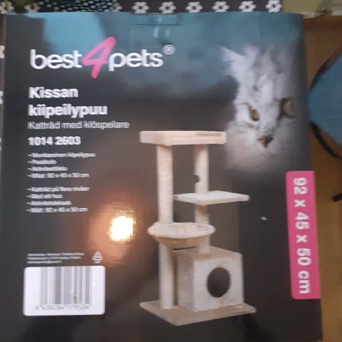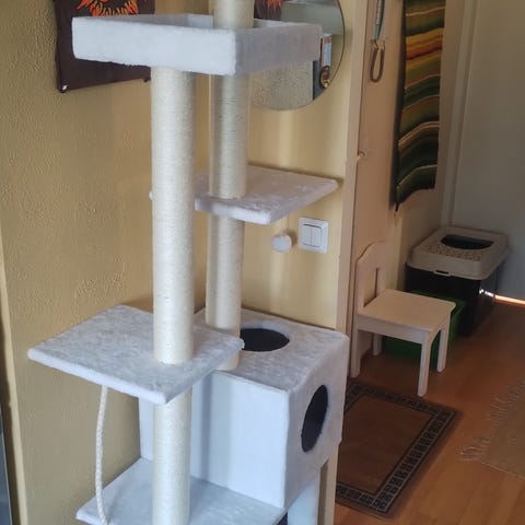 Todella tukeva ja painava kissan kiipeilypuu. Sopii hyvin aktiivisellekin kissalle, koska rakenne on vakaa eikä kaadu helposti.