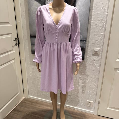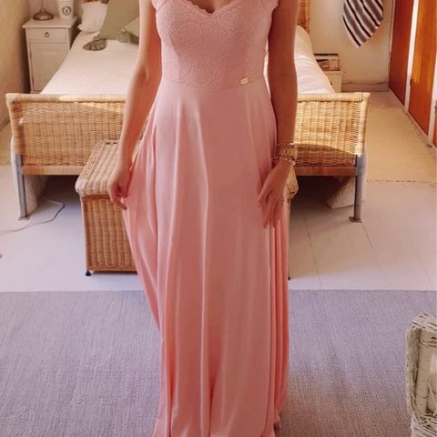Bubbleroom juhla- tai cocktailmekko naisille. Koko S. Mekko on valkoinen ja valmistettu polyesteristä. Yläosa on pitsikuvioitua kangasta, jossa on pitkät hihat ja V-pääntie edessä. Alaosa on yksivärinen, kevyesti laskeutuva helma. Sopii juhla- ja tilaisuusmekoksi.