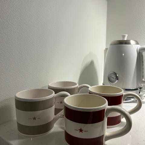 Erittäin hyväkuntoisia vaaleita Lexington kulhoja 8kpl. 4 sinireunaista ja 4 punareunaista. Halkaisija 15cm ja korkeus 8cm. Hinta 5 euroa/kpl