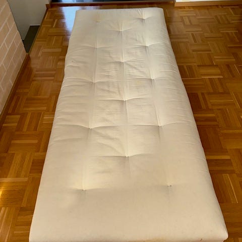 1. Futon Cocos paksumpi ( 4krs puuvillaa+ kookoskuitumatto 3cm+ 4krs puuvillaa) 180€, ovh 414€