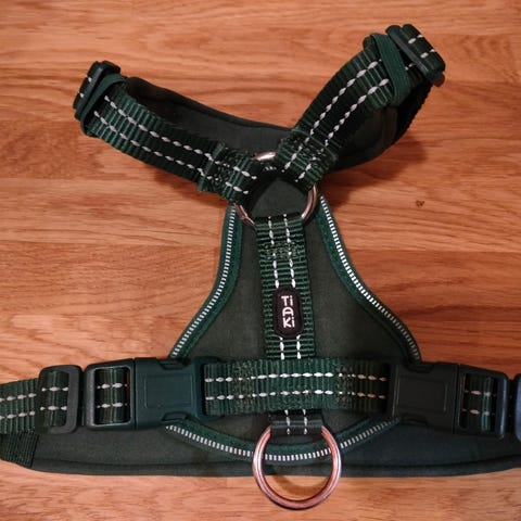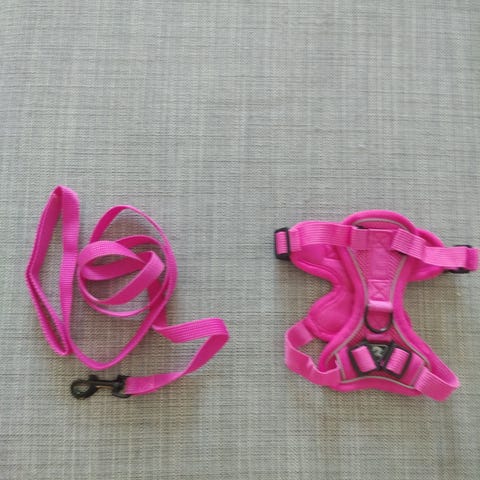 Keskikokoisen koiran turkoosit Y-valjaat, joita on vain kokeiltu. Koko S 2,5x45-70 cm. Samaa väriä talutushihna, jota on muutaman kerran käytetty. Molemmissa on 3M heijastimet. Näiden ovh 48 e.