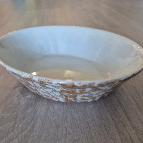 Halkaisija 22 cm, korkeus 6 cm. Lasitus ehjä, ei kolhuja tai säröjä. Parempi puhdistus jää uudelle omistajalle. Hinta 3 euroa. Kaupat Tammisaari keskusta.