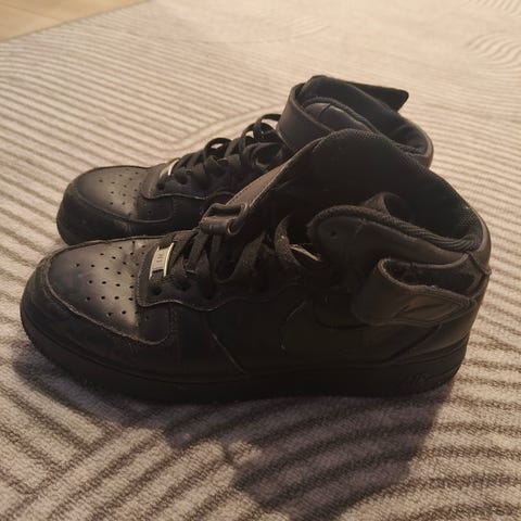 Myydään mustavalkoiset Nike Air Force 1 -kengät. Perus siistissä kunnossa ja vähän normaalin käytön jälkeä, mutta kantapäät ovat osittain kuluneet sisältä puhki (katso kuva). Tästä edullisesti kakkoskengiksi tai pienellä fiksauksella vielä pitkäksi aikaa käyttöön!
