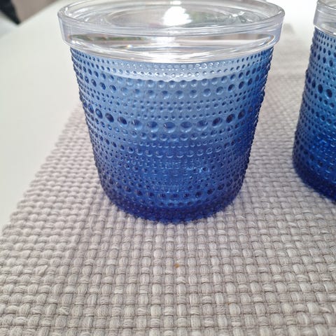 Iittala Kivi ja Kastehelmi tuikkukupit sinistä lasia. Myydään kuvassa näkyvänä settinä. Nouto