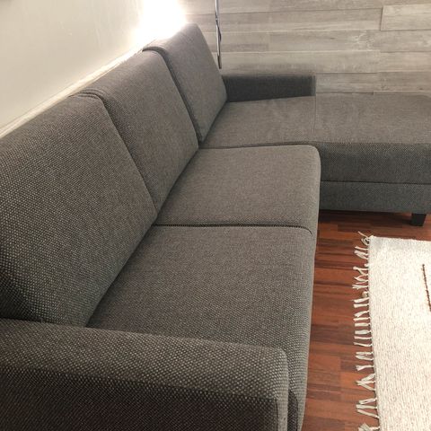 Myydään v.2019 uutena ostettu Pohjanmaan -merkkinen Torino vuodesohva. Sohva on ehjä ja puhdas. Väri tummanharmaa. Sisältää kaksi samasta kankaasta olevaa koristetyynyä. Sohvan sisällä runsaasti säilytystilaa.