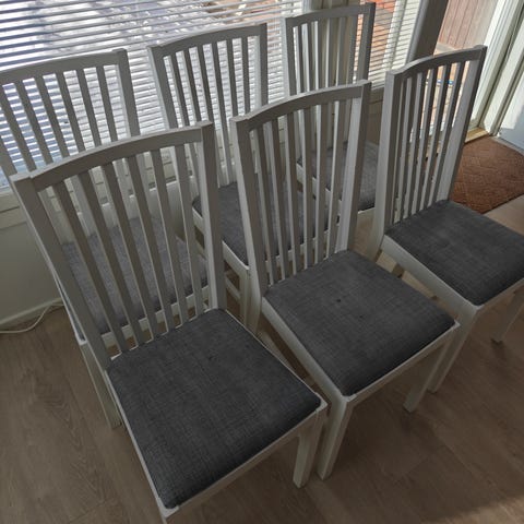 Mustat ruokapöydän tuolit. Kuvassa näkyviä käytön kulumaa tuoleissa, mutta ei mielestäni näy, jos ei osaa etsiä.