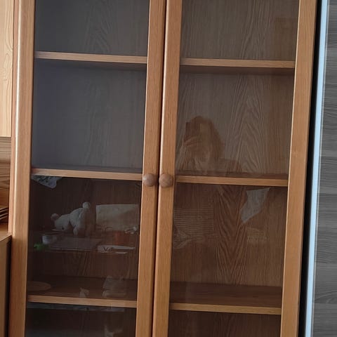 Valkoinen Jysk-vitriini . Lasihyllyt.