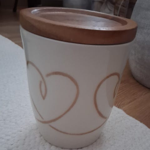 Rasiassa on muovitiiviste puisen kannen ympärillä, joten se pysyy tukevasti kiinni ja pitää aromit tuoreina. Kansi puuta.