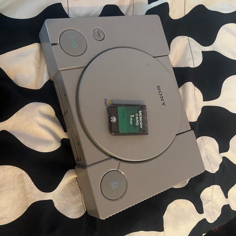 Ps1 pelikonsoli. Mukana tulee ohjain, virtajohto ja videokaapeli sekä muistikortti.. Kuukauden toimivuustakuu.