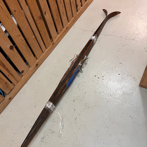 Hyväkuntoiset metsäsukset / eräsukset siteiden ja sauvojen kanssa. Sauvojen pituus 150 cm. Huom, myynnissä myös 210 cm sukset eri ilmoituksella.