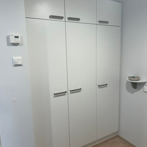 Annetaan kuvan keittiökaappien ovet. Siistikuntoiset. Kaikki kerralla