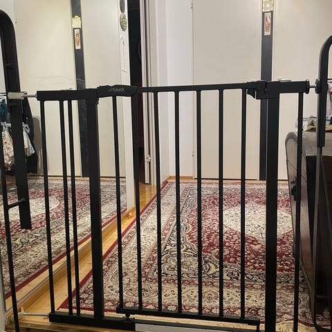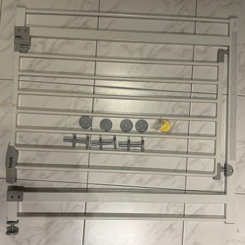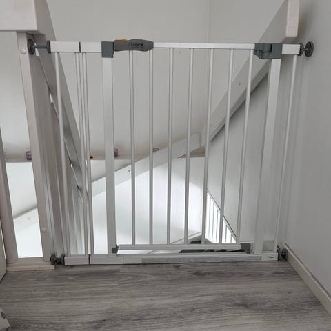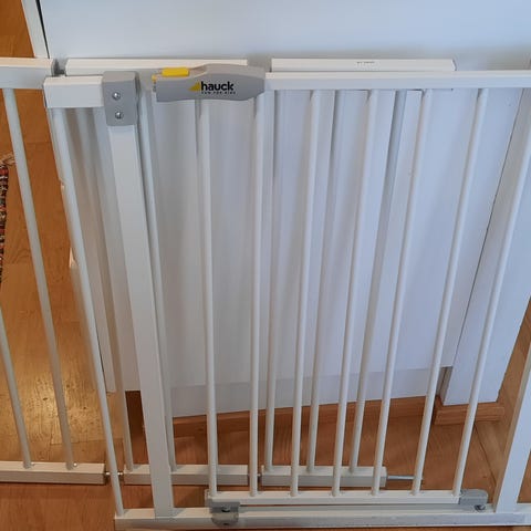 Hauck turvaportti lisäosalla. Perusosa sopii 75-80 cm aukkoihin ja lisäosan kanssa 96-101 cm aukkoihin. Kiinnitetään pingottamalla. Avautuu yhdellä kädellä molempiin suuntiin.