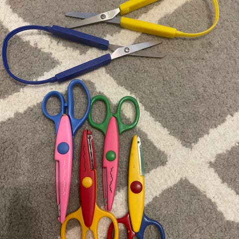 Vihreät Fiskarsin vasenkätiset sakset. Pituus 13 cm.