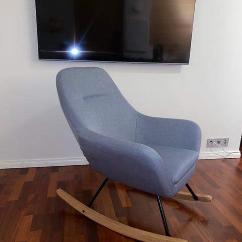 Myynnissä ilmeisesti Poäng-keinutuolin vanhempi malli. Vaatii korjausta istui osasta (pystyy nytkin istumaan), muuten hyvä kunto. Taljat kaupan päälle.